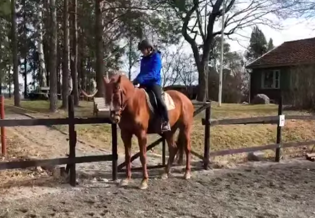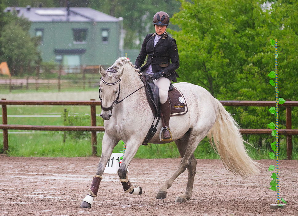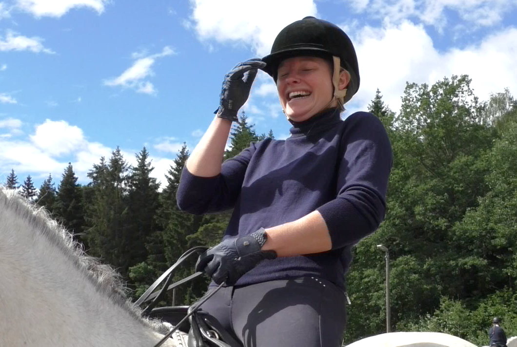 Camilla som är inbiten dressyrryttare får låna en häst och rida en WE bana. Lyssna här